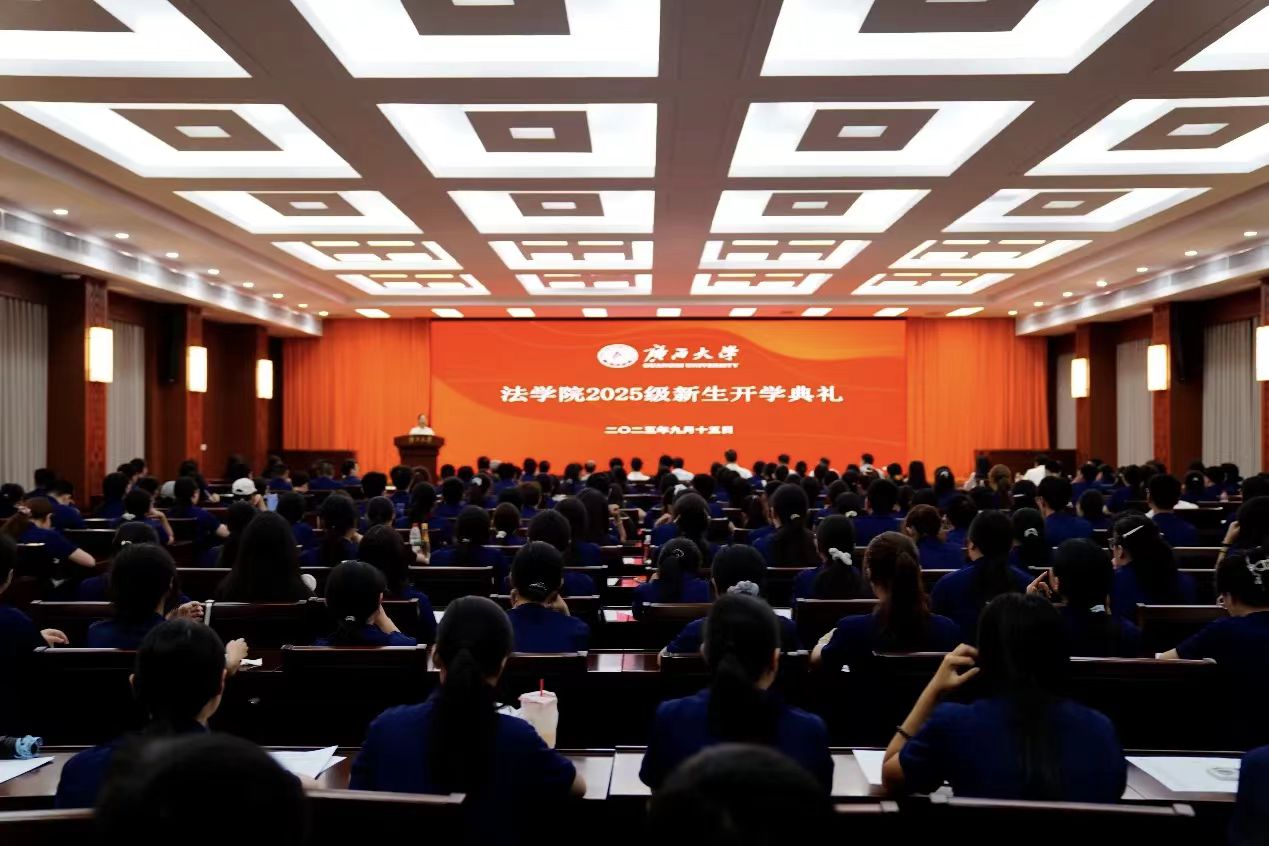 至此,广西大学法学院2025级新生开学典礼圆满落幕。今年,法学院迎来了本科生新生150人,研究生新生175人,来自27个省(区、市)。愿2025级全体法学新生在未来的求学路上乘风破浪、学有所成,以青春之力书写法治理想,以专业之能践行时代使命!
