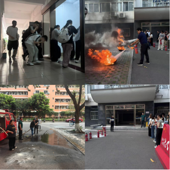 培训结束后,全体参训人员移步至演练场地,在保卫处工作人员的指挥下有序开展模拟火场应急疏散演练。演练现场,随着指令发出,参训师生迅速响应、沉着应对,严格按照预定路线行动,俯身弯腰、用湿毛巾捂住口鼻,沿着走廊安全通道快速有序撤离至指定安全区域,顺利完成疏散任务。随后,全体参训师生按照黄光电老师演示的干粉灭火器的正确操作步骤与扑救技巧,依次上前亲自操作灭火器扑救模拟火源,练习水带的连接与铺设,在实践操作中加深了对消防器材使用方法的理解和掌握。