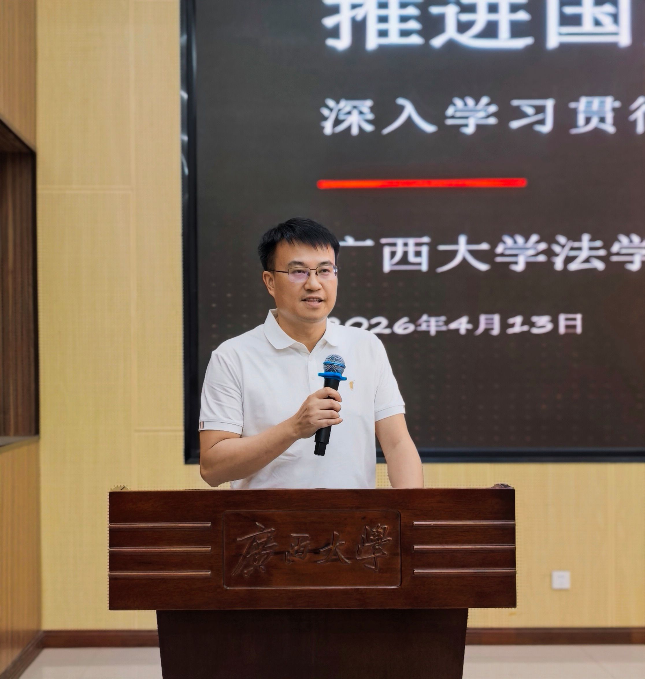 4月14日,在第11个全民国家安全教育日来临之际,为深入贯彻总体国家安全观,全面提升青年学子国家安全意识、法治素养与保密意识,夯实校园安全思想根基,筑牢校园安全保密防线,由广西大学学生工作部(处)、法学院党委联合主办的4・15全民国家安全教育日巡回普法主题活动首场活动,在资源环境与材料学院123报告厅顺利举办。
