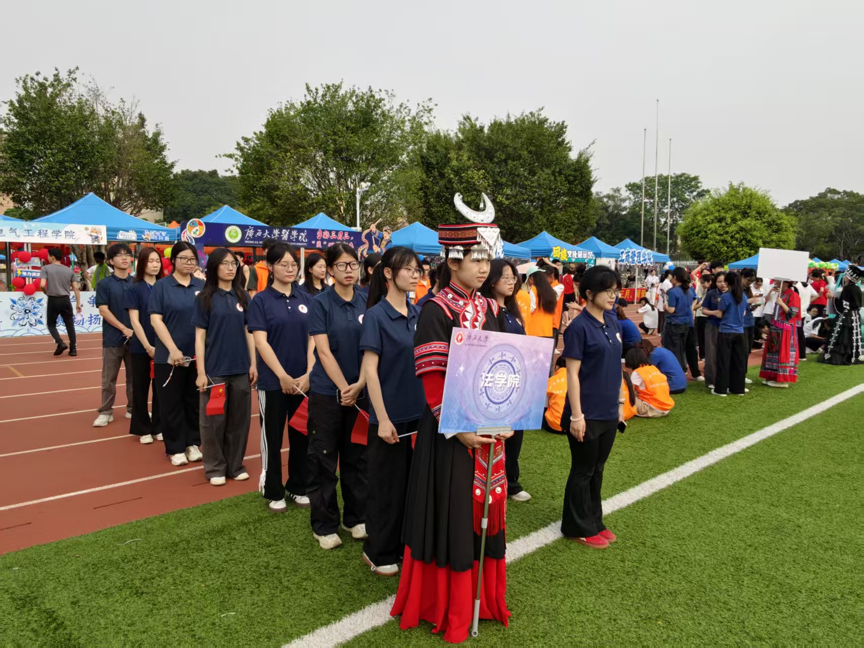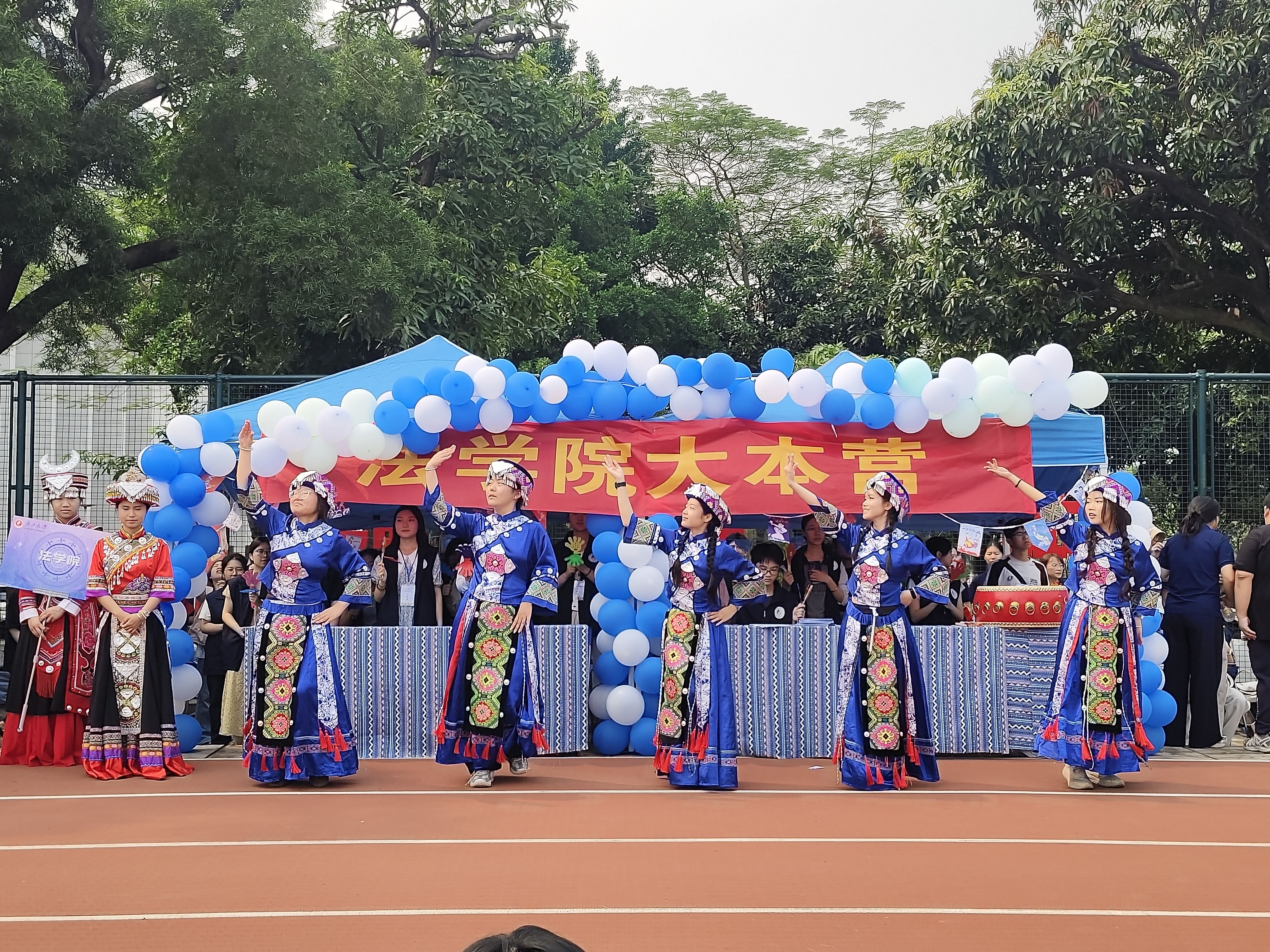 榴花映日,春和景明;壮乡歌起,雅韵流长。4月11日,广西大学“三月三”民族文化节在西校园田径场盛大启幕。法学院学子以青春赴盛会,以法治润初心,在开幕式展演、陆地冰壶、和球竞技等系列活动中尽展风采,书写法学青年昂扬向上、团结奋进的时代篇章。